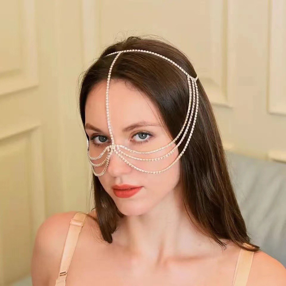 クロスボーダーのファッションのシンプルな層の顔のチェーンのマスクの宝石の装飾の部品の輝く髪の毛の水のドリルの装飾のチェーンの宝石の女性