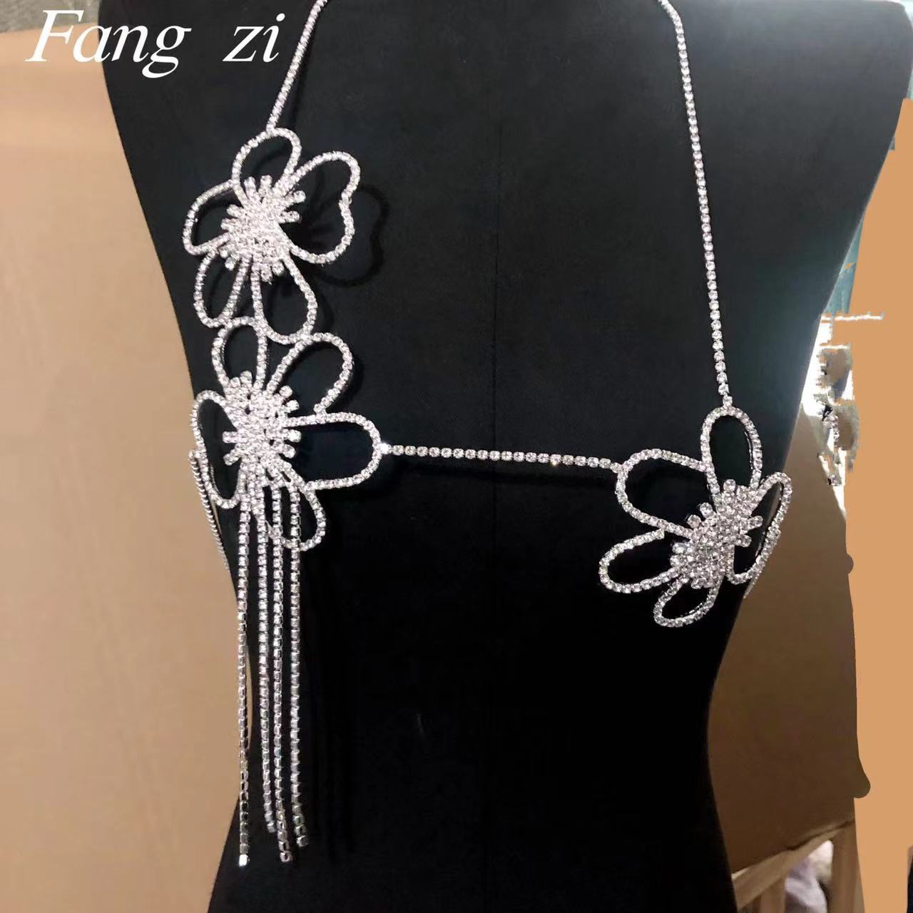 欧米のクロスボーダーの女性のキラキラ光るドリルの長いタイプのフリンジの花の体のチェーンのブラジャーの上着のネックレスの体のチェーンの宝石