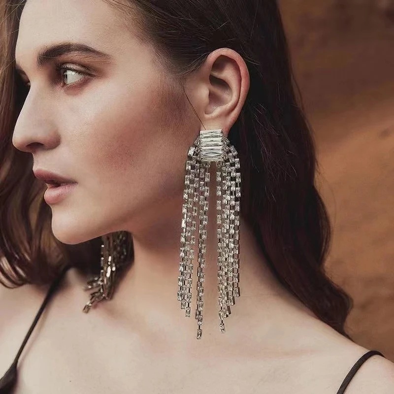 欧米のファッションの軽い豪華な水ドリルの長いフリンジイヤリングの女性の気質は水晶のイヤリングの宝石のearringsに似合います。