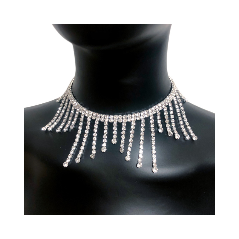 新欧米ファッションキラキラ長流蘇全水晶ネックレス女性贅沢ドリルドレス声明ジュエリーネックレス