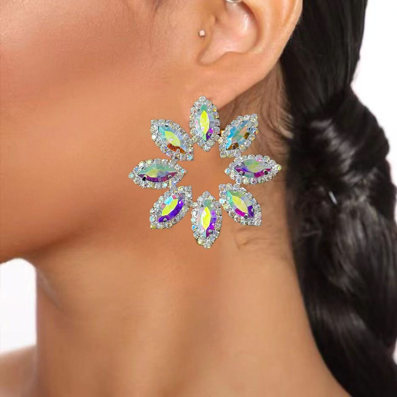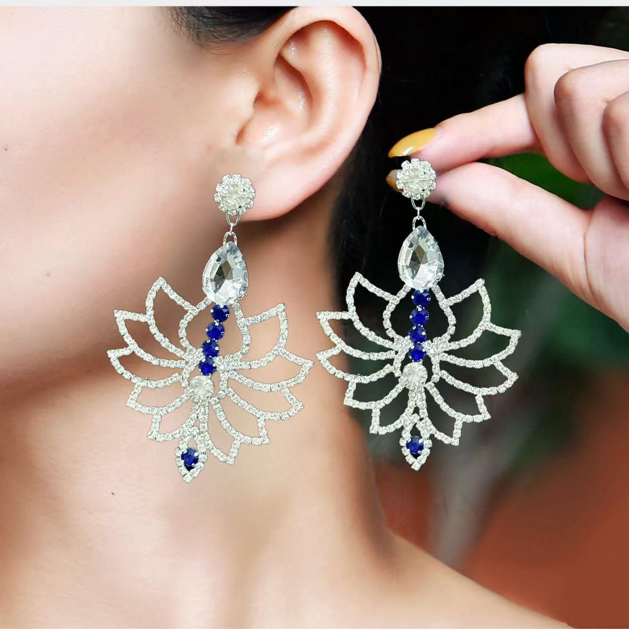 アマゾンの人気ファッションイヤリングペンダント蓮のラインストーンモザイク水晶女性の優雅なイヤリング