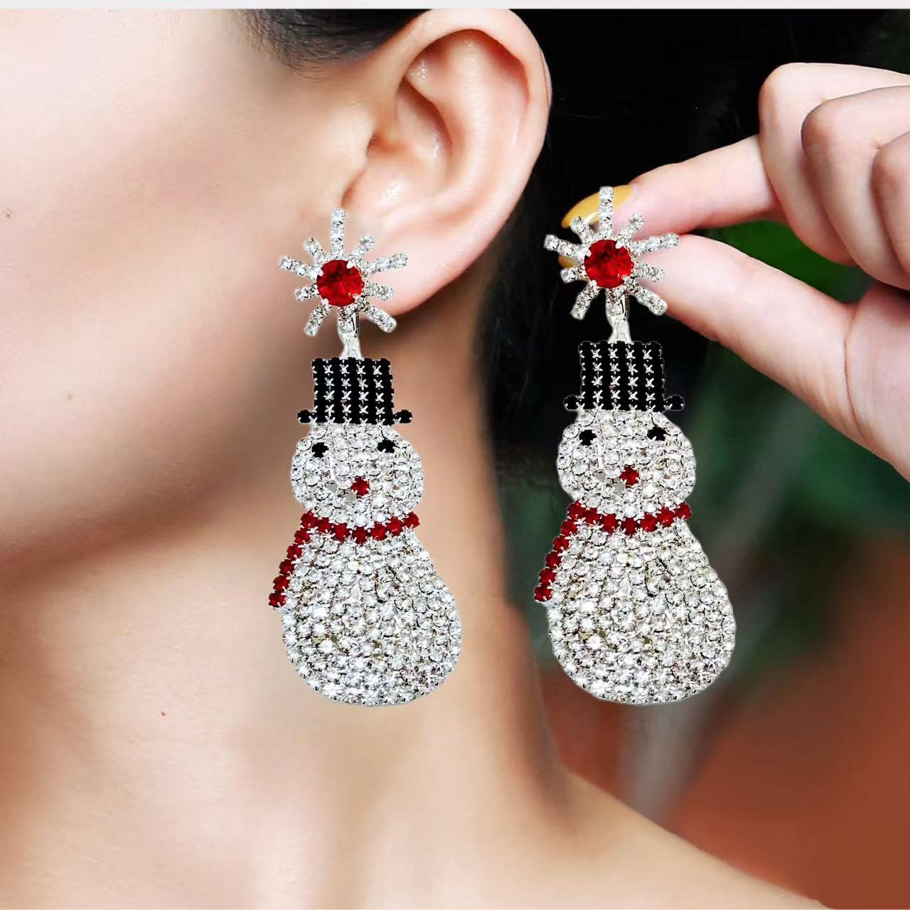 欧米のファッションのキラキラしたラインストーンの個性的な雪だるまの耳飾りの精巧なドリルのかわいいクリスマスのパーティーの宝石の贈り物
