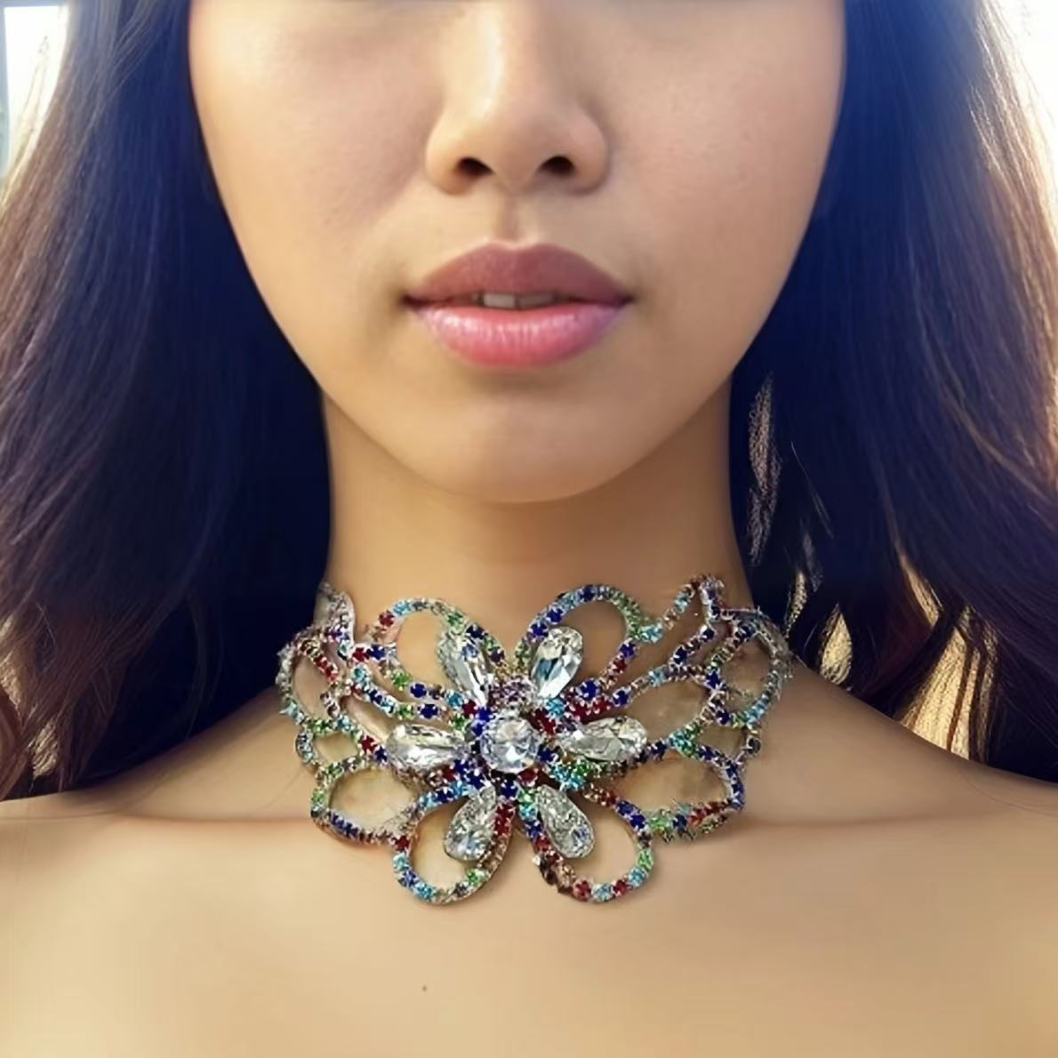 国境を越えた新しい花のカラーライン石のネックレス女性の高級感ファッションの透かし彫りのドリル