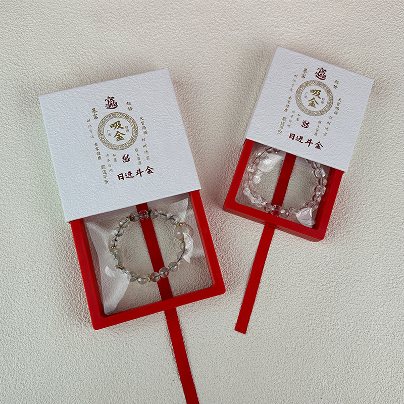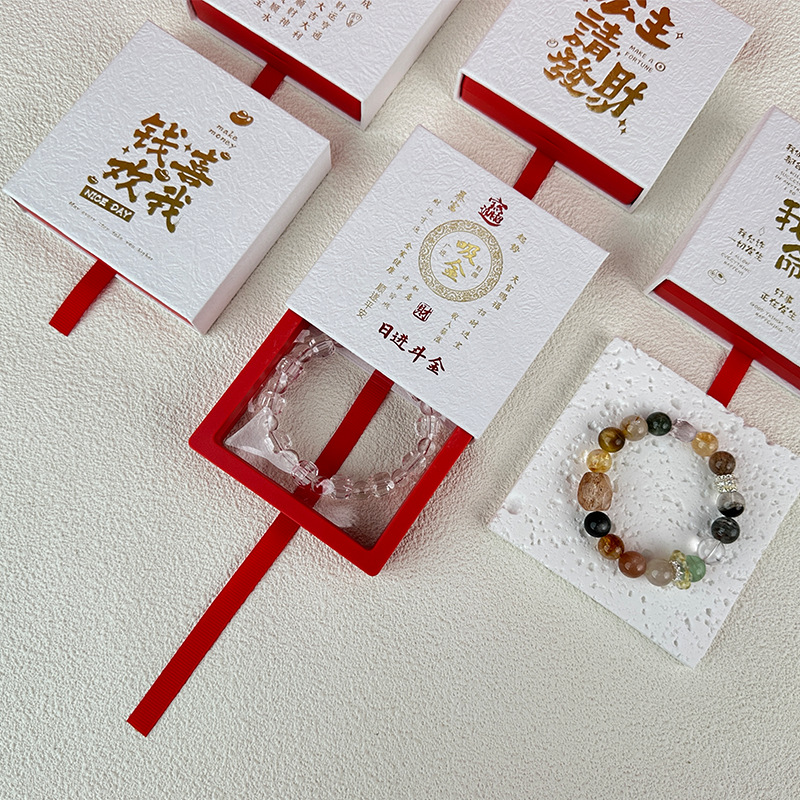 現物水晶包装箱紅書爆金水晶手串展示箱高級感水晶手串pe懸濁箱
