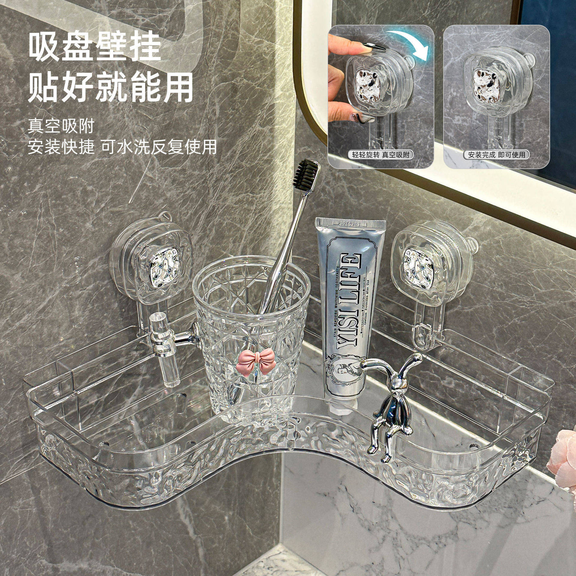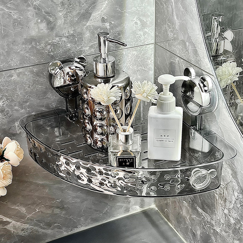 浴室強力吸盤式コーナーラックトイレ洗面台穴なし壁掛け式棚浴室収納ケース
