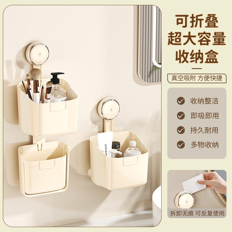 吸盤折りたたみ収納ボックス穴なし収納ボックストイレ吸盤洗面台壁掛け式化粧収納ボックス