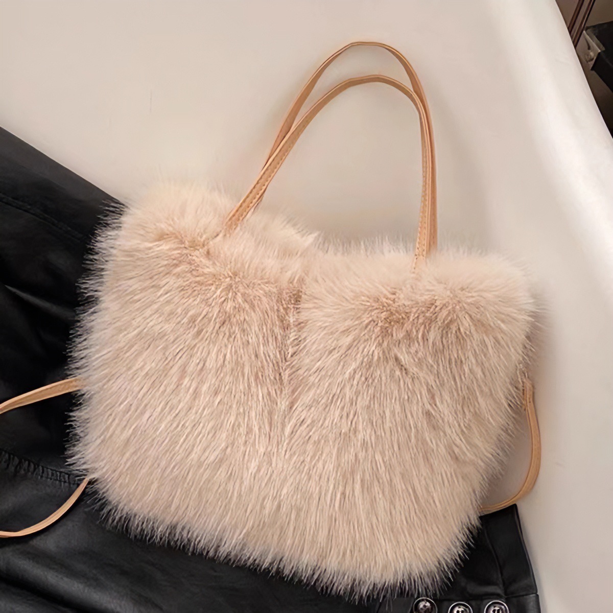 毛のハンドバッグの女性バッグ2024の新しい秋冬の高級感の小さい大衆の超柔らかい毛のふわふわしている斜めのショルダー・バッグのぬいぐるみ