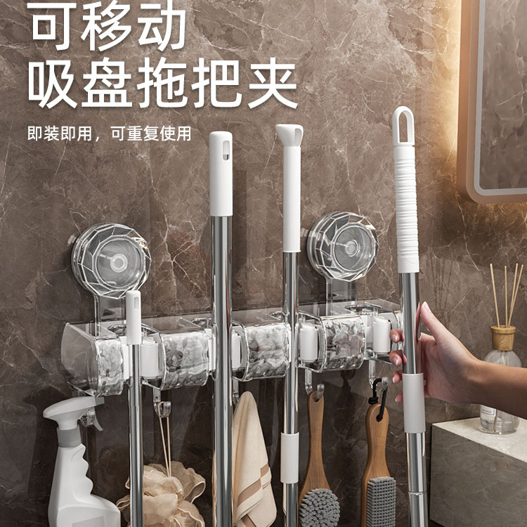 吸盤長尺モップフック穴なし家庭用トイレ強力固定ハンガー浴室収納クリップ