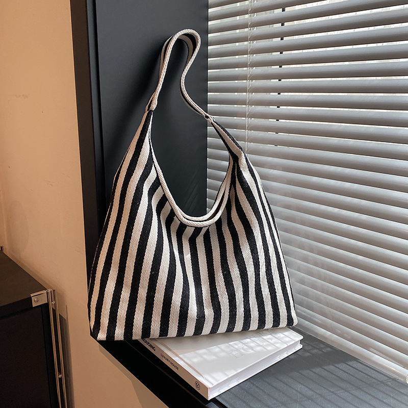 2024韓国版レトロ文芸トートバッグシンプル小清新ストライプショルダーバッグカジュアルファッション大容量ショッピング