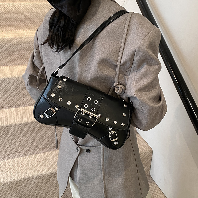 原材柳釘シングルショルダーバッグ腋の下バッグ小衆高級感法棒バッグ復古百合insシングルショルダーバッグ