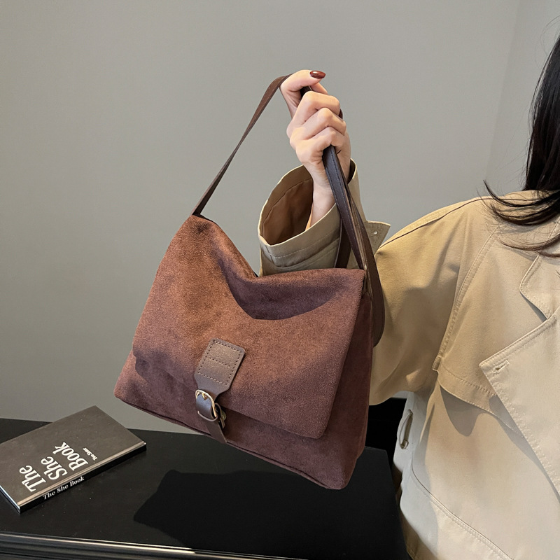 レトロ郵便郵便バッグ2024純色秋冬新気質ベルベット女性バッグシングル肩脇下バッグカジュアルバッグ斜め掛けバッグ