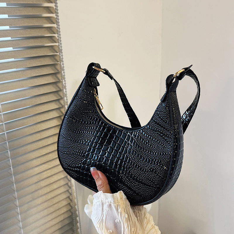 高級感の小さいカバンの女性の脇の下のカバンの2024の新型のワニの紋様の肩のサドルは対外貿易の越境を包んで署名して代行します。