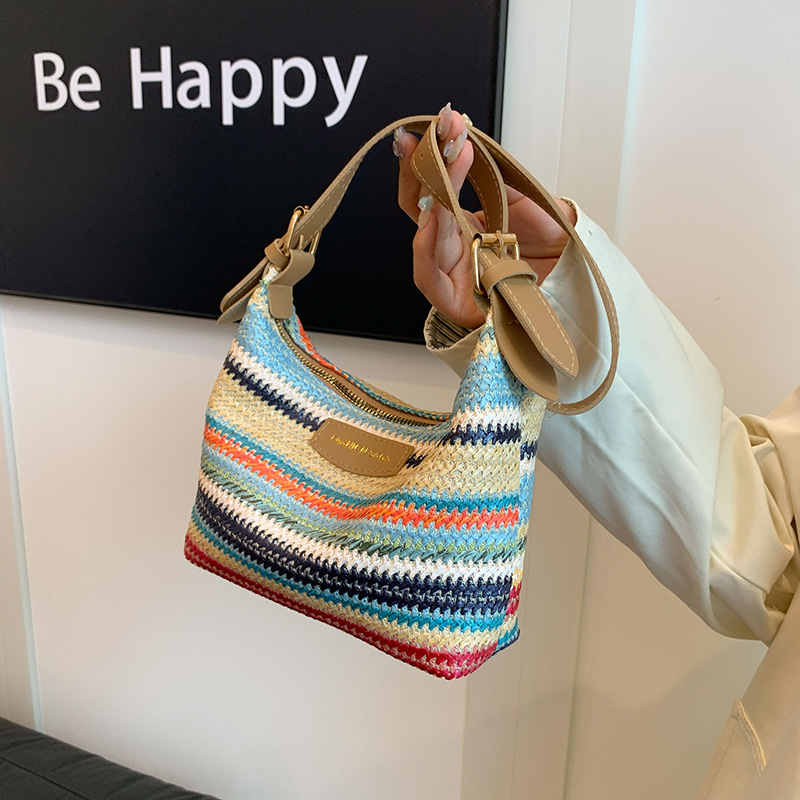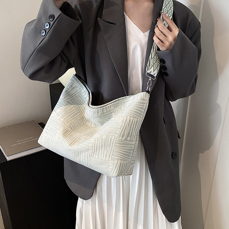 大容量ストライプズックシングルショルダーバッグレディース2024新作秋の怠惰な風斜めショルダーバッグins通勤トートバッグ