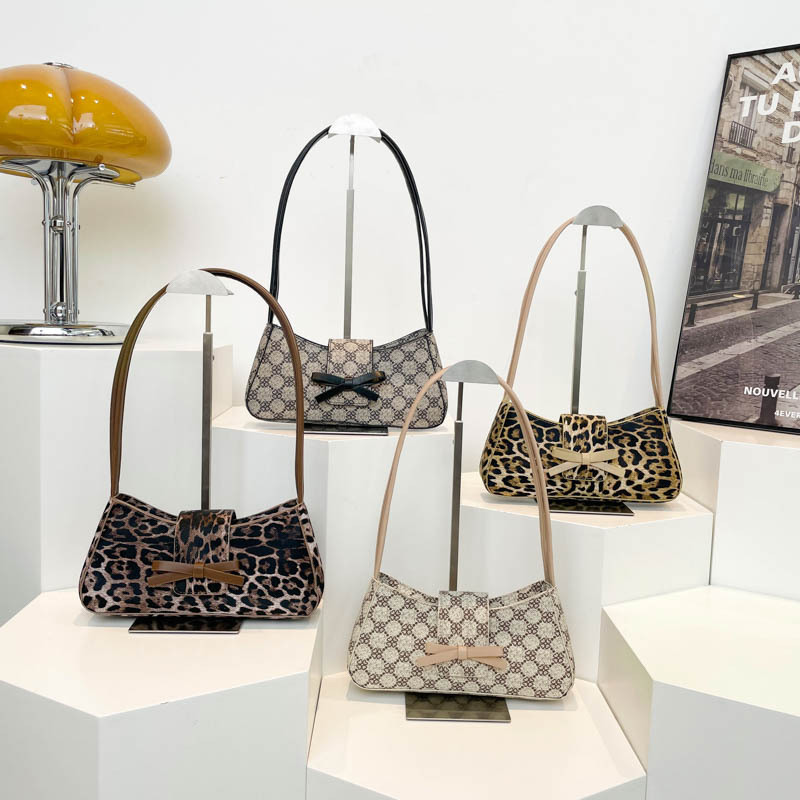 ヒョウ柄バッグ新型レトロ韓国版蝶結びファッションpu皮ファッションファッションファッション個性高級感シングル肩脇下バッグ