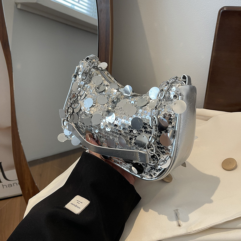 小衆の質感の明るいチェーンの小さい包みの女性の2024新型の百合のフランスのファッションの対外貿易のシングル肩のわきの下の包み