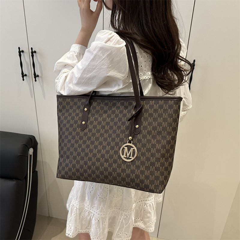 ヨーロッパとアメリカのクロスボーダーパーソナライズされた大容量レターシンプルプリントトートラージバッグレディース新しい菱形通勤ショルダーバッグ