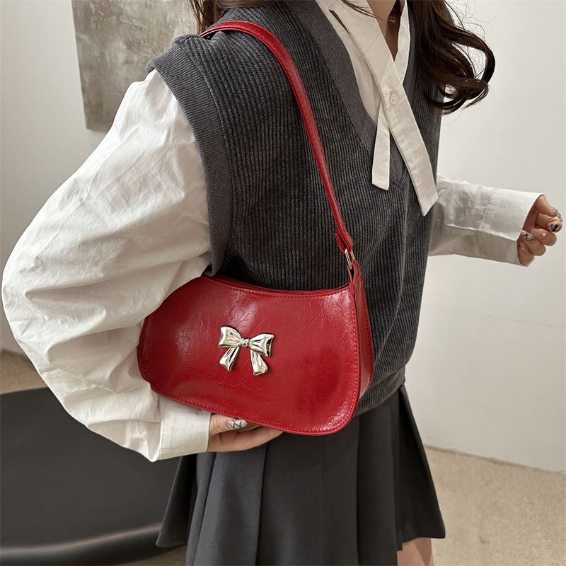 2025新型気質蝶ファッションデザイン腋の下バッグ女性洋気純色レトロな質感国境を越えたショルダーバッグ