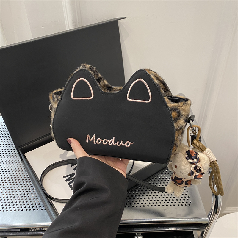 韓国版ファッション豹紋猫猫小包女2024新型小衆漫画小方包百合毛斜め包包