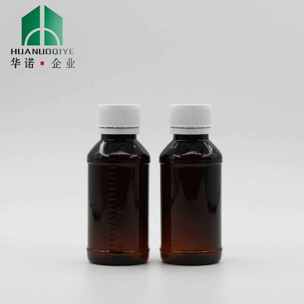 100mlミリリットルプラスチックボトル斜め肩ポリエステルpet茶色保険キャップ薬ボトルスケール付きシロップボトル