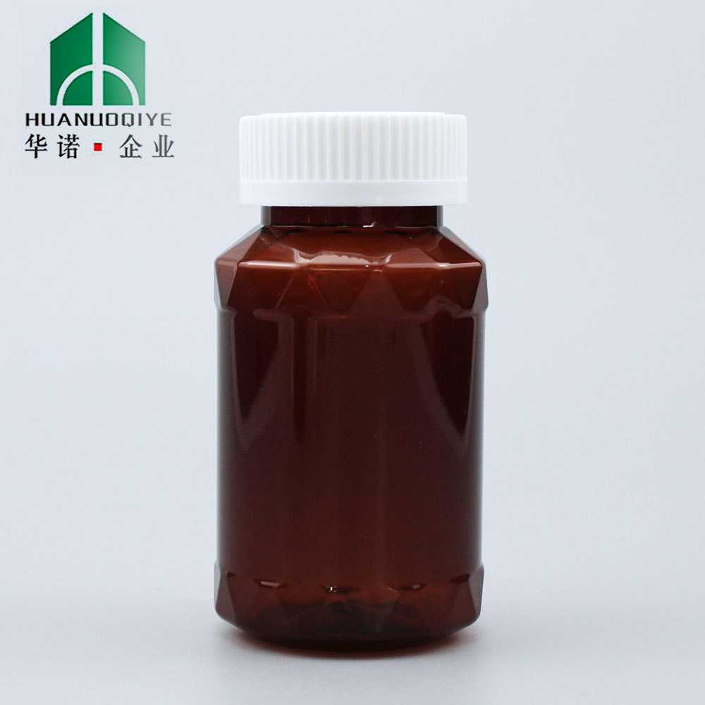 150mlプラスチックボトル子供用安全カバーラウンド肩ポリエステルpet透明茶色食品保健品ボトルカプセルボトル