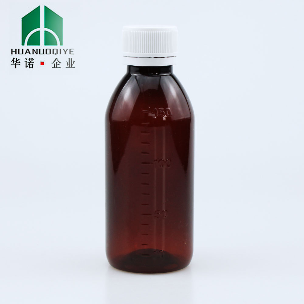 150ml茶色経口液体ボトルpet液体薬用シロップボトル計量カップ