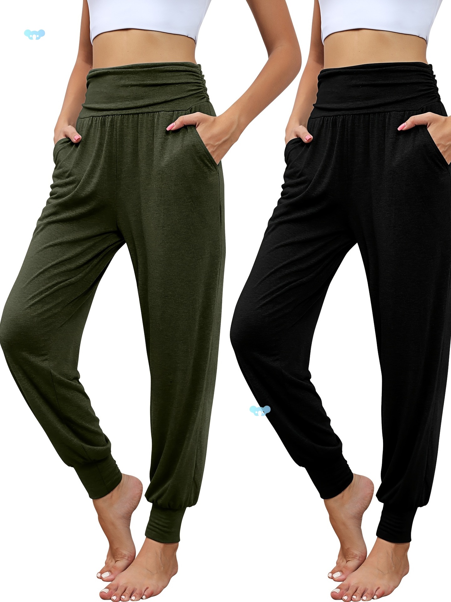 2 パック レディース ヨガ ジョガー コージー ハイウエスト カジュアル クロスボーダー