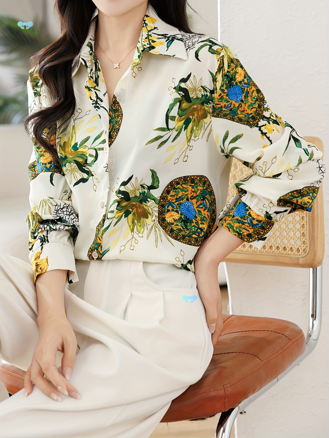 レディース トロピカル プリント シフォン シャツ 軽量 長袖