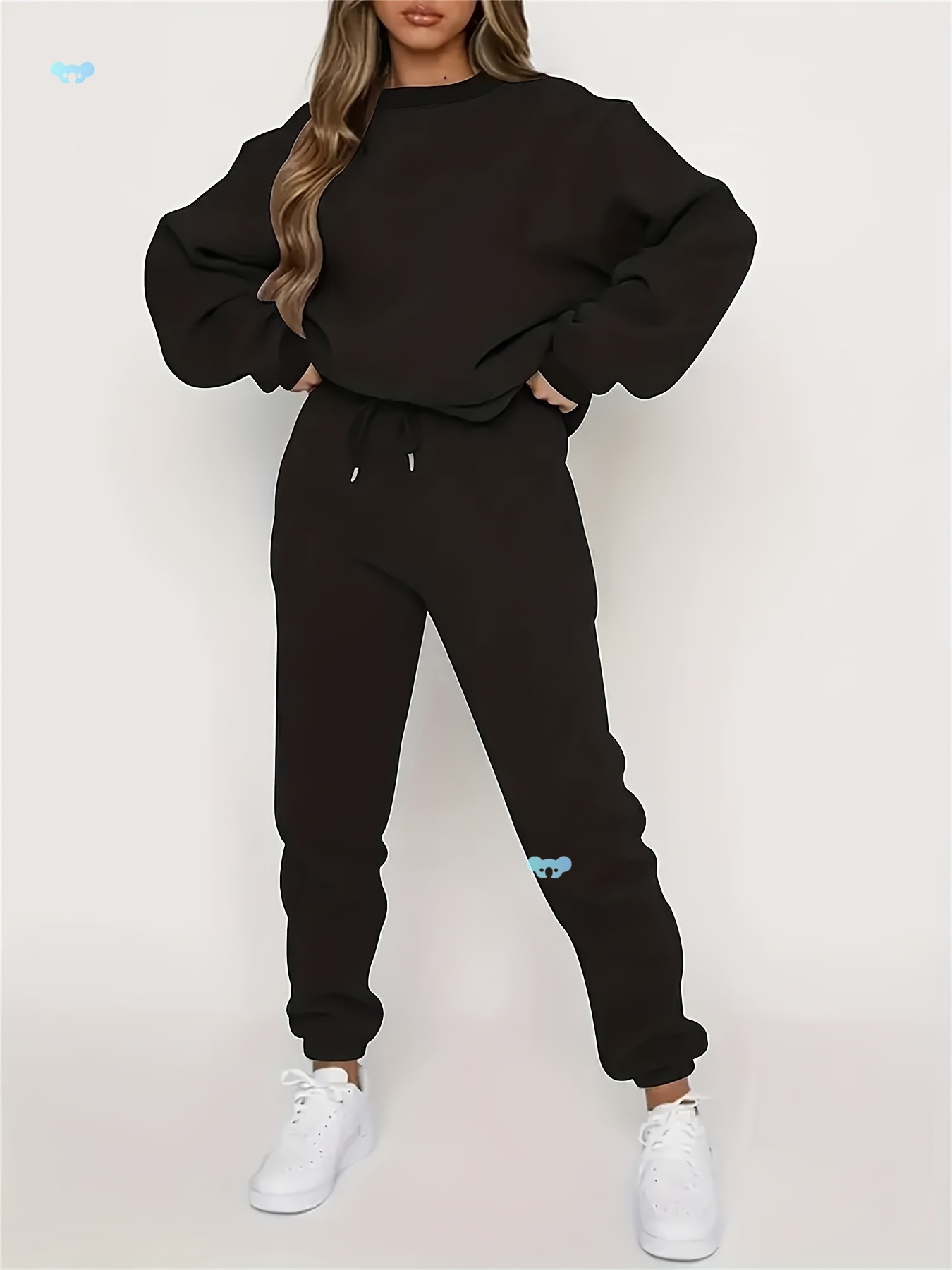 長袖の居心地の良いスウェットシャツとジョガー居心地の良いソリッドカラークロスボーダー