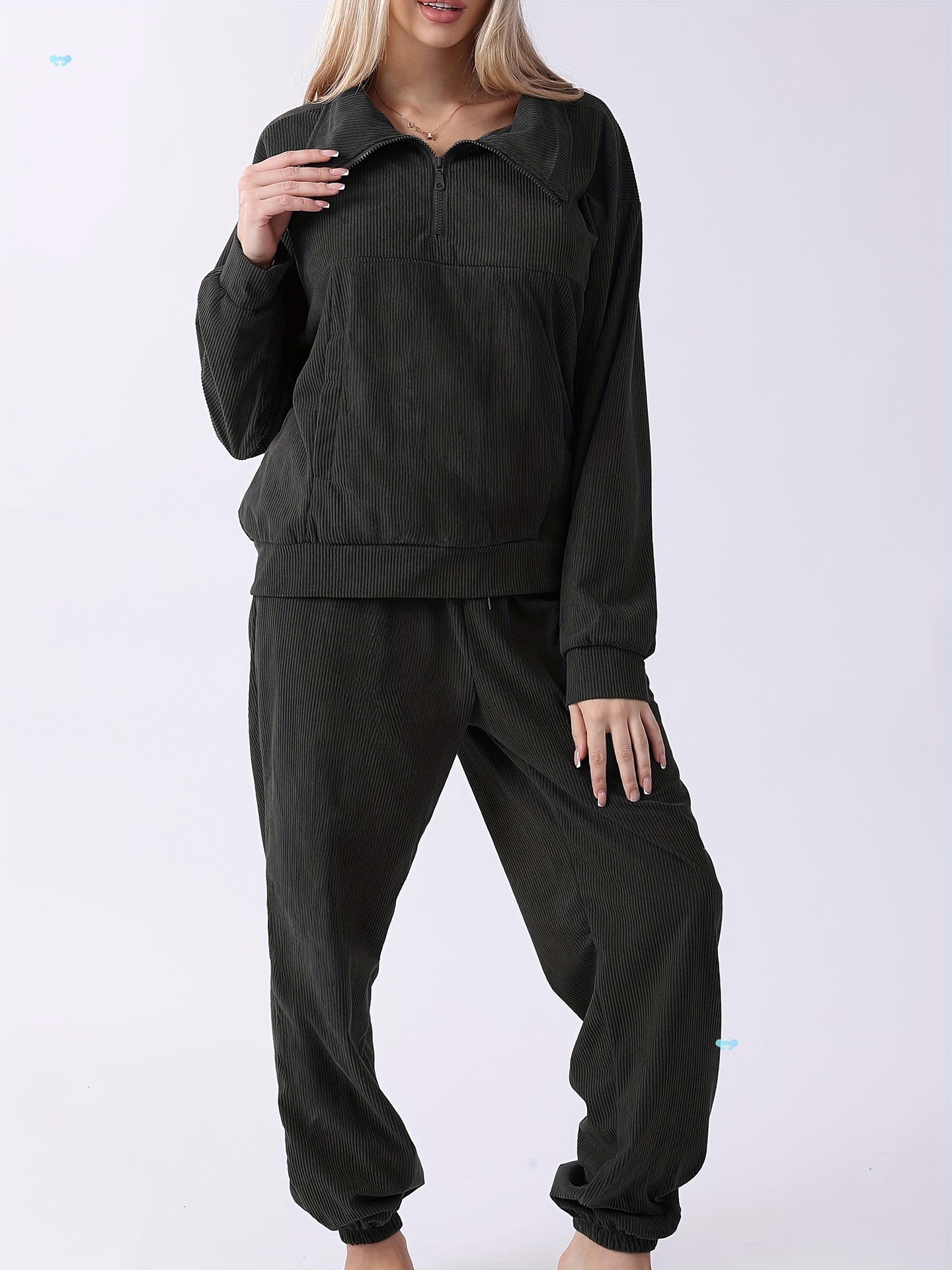 レディース 2 ピース スウェットスーツ セット カジュアル 長袖 ハーフ ジップ