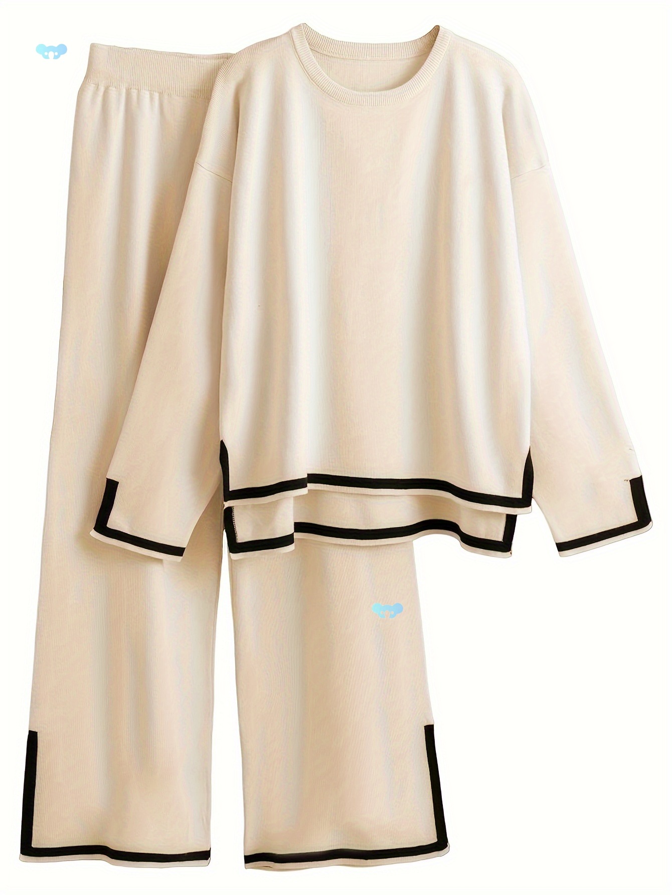 レディース クルーネック 長袖 ルーズトップ ワイドレッグ 2枚セット
