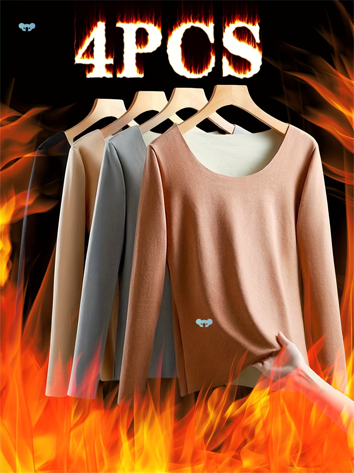 4 個の女性用サーマル下着長袖ラウンドネックトップス