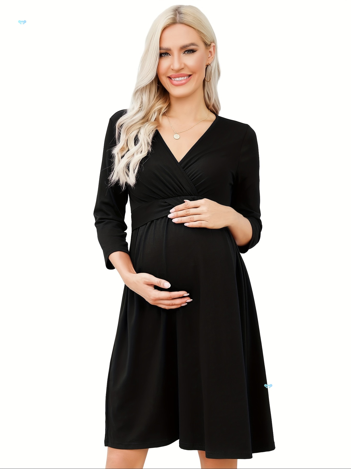 レディース カジュアル フリル マタニティ ドレス V ネック 授乳 3 4 クロスボーダー
