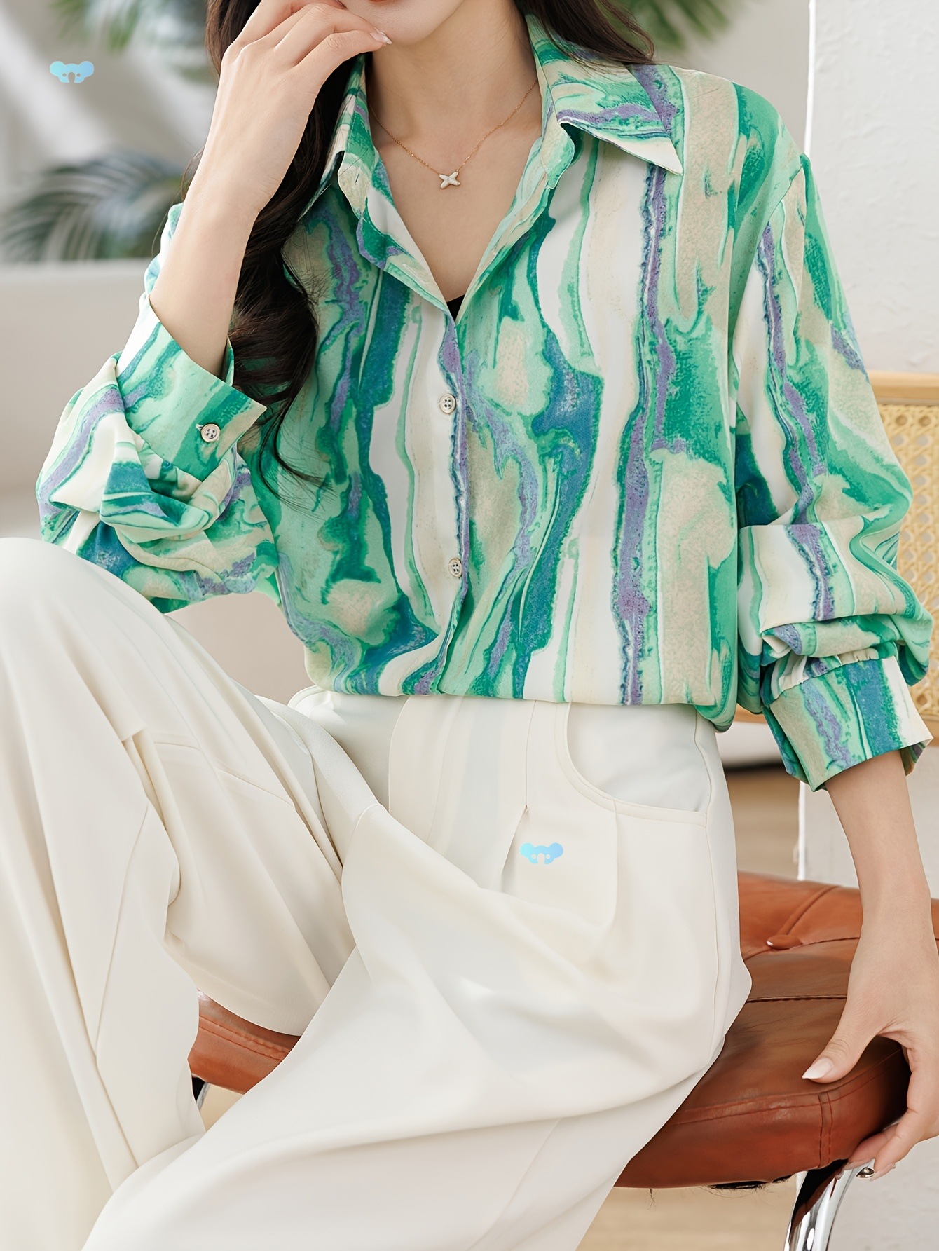 スタイリッシュなライトブルーのレディース ブラウス ソフト クロスボーダー ドロップシッピング