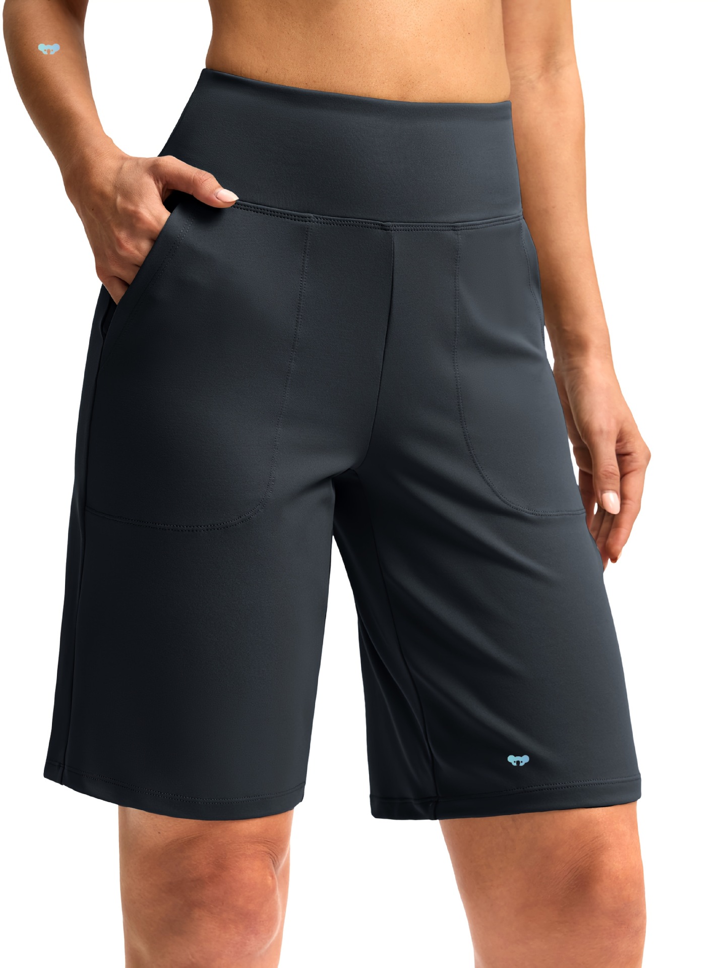 レディース ハイウエスト バミューダ ショーツ 膝丈 アスレチック クロスボーダー