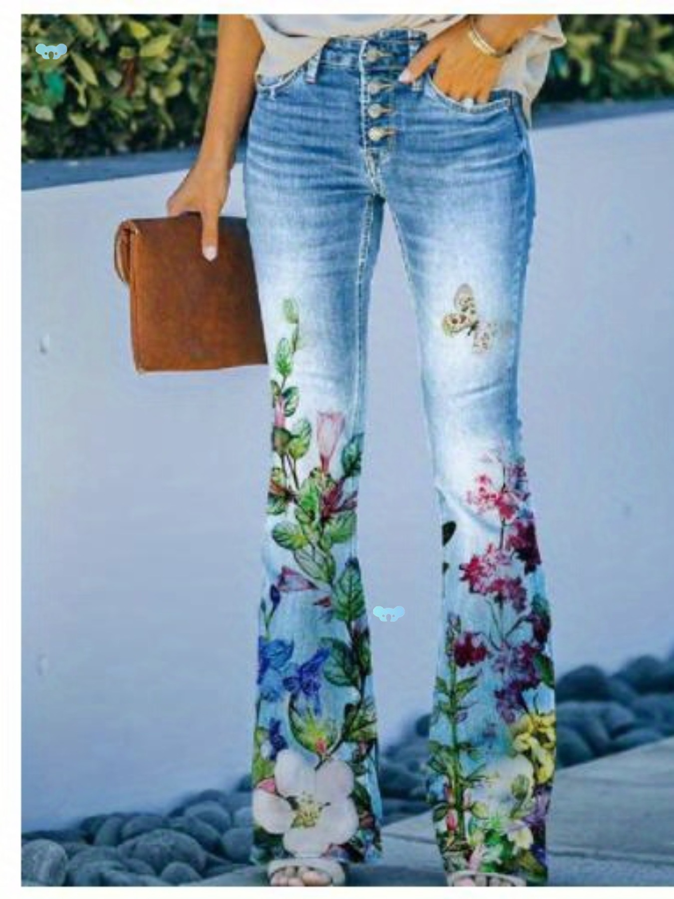 エレガントな花柄刺繍入りワイドレッグバギージーンズ(生地)