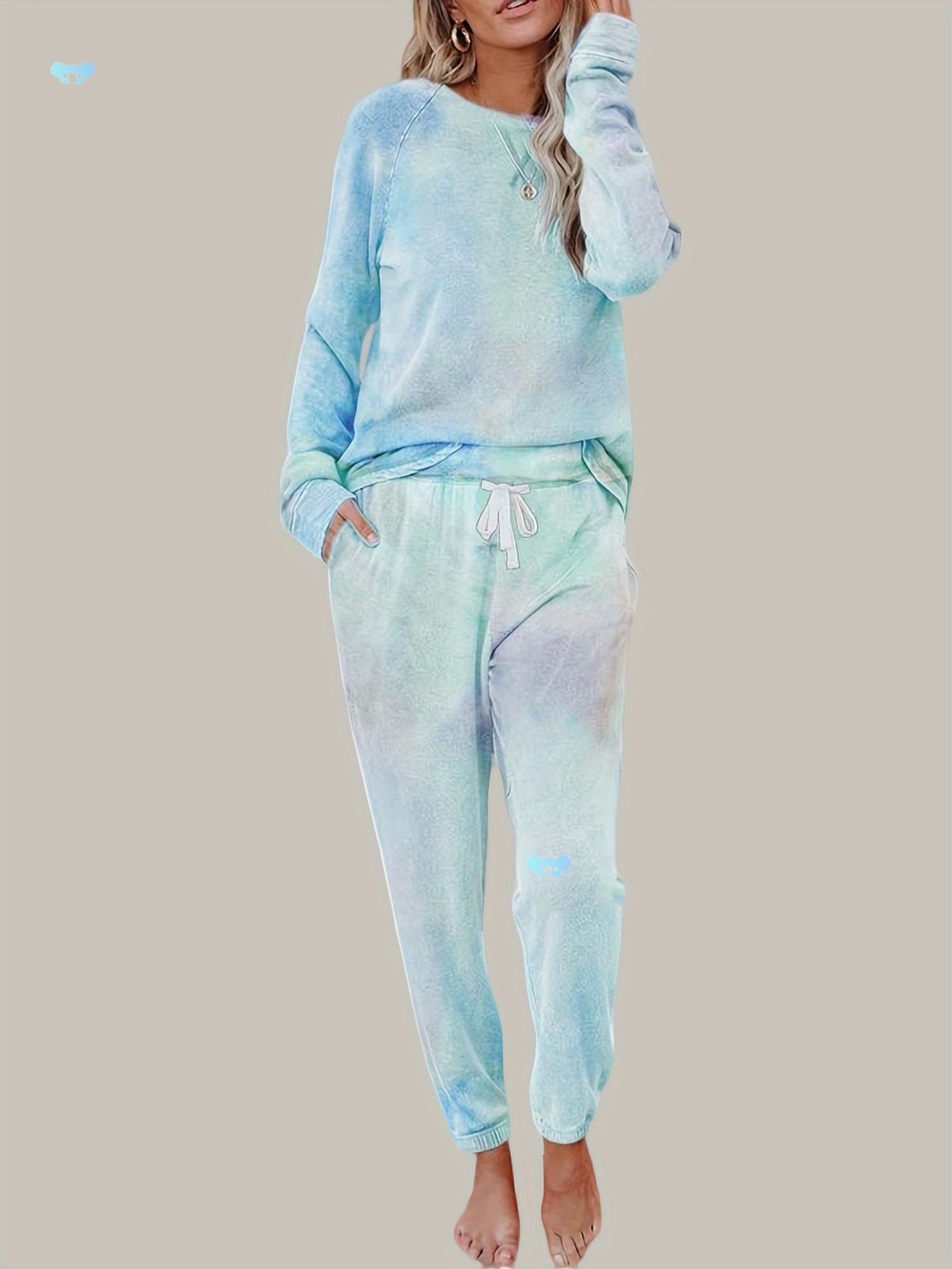 レディース タイダイ スウェットスーツ セット 2 ピース 長袖プルオーバー