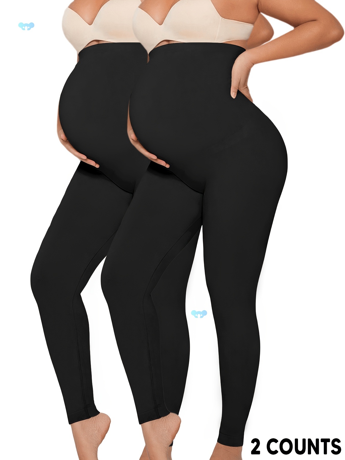 ハイウエスト妊娠サポートレギンスソリッドカラークロスボーダー2枚組