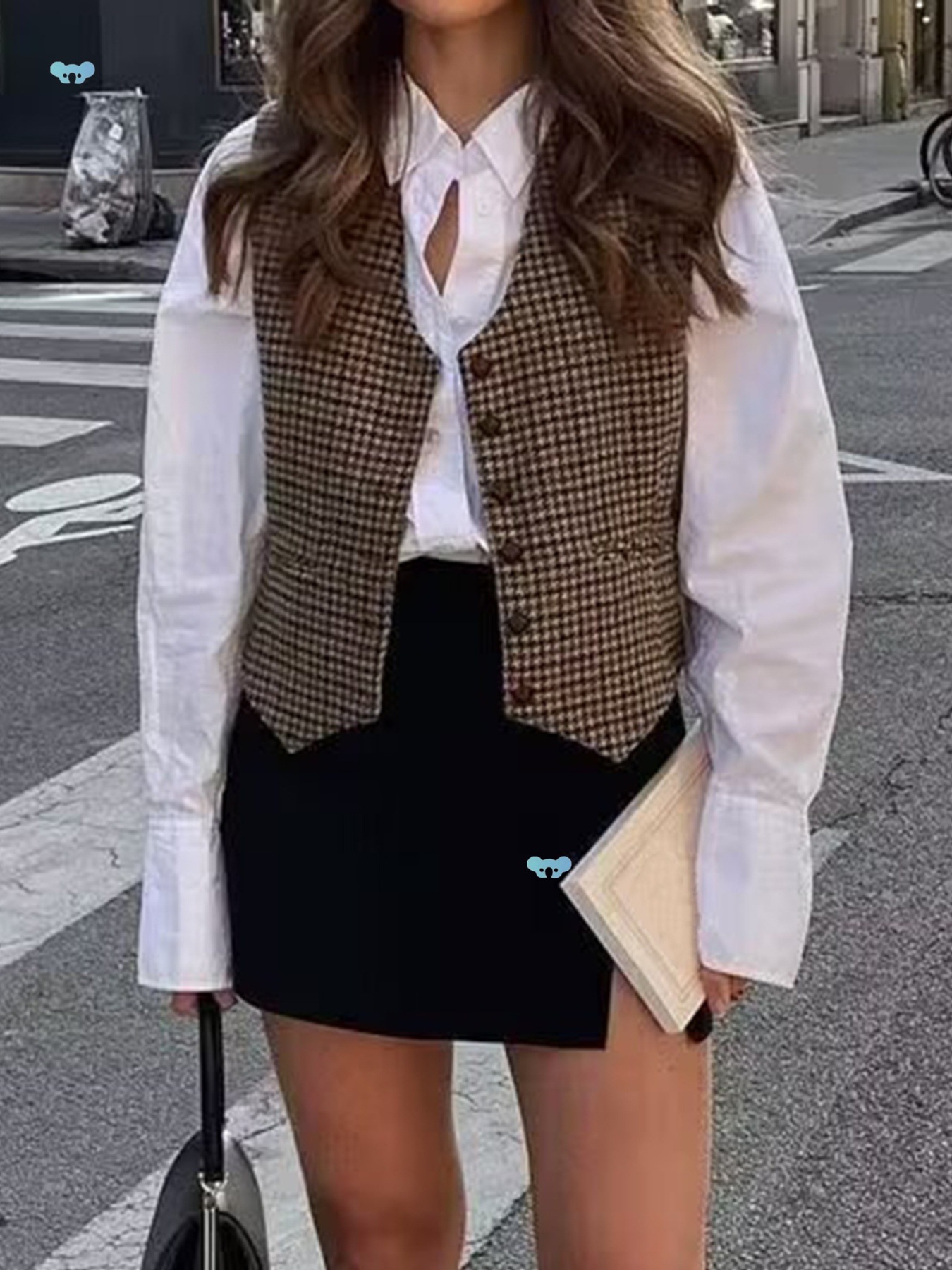 女性ベストヴィンテージスリーブボタンクロスボーダードロップシッピング
