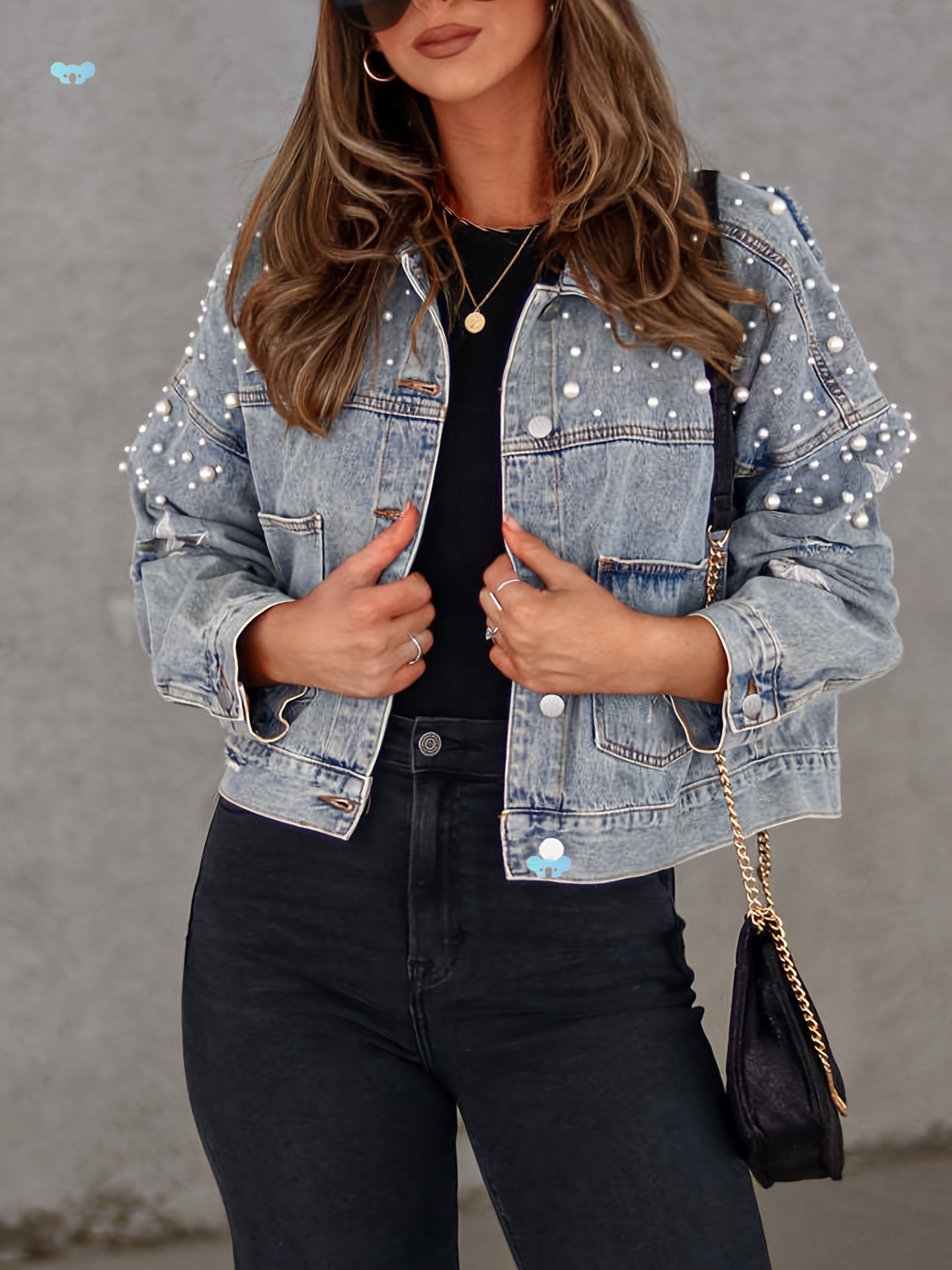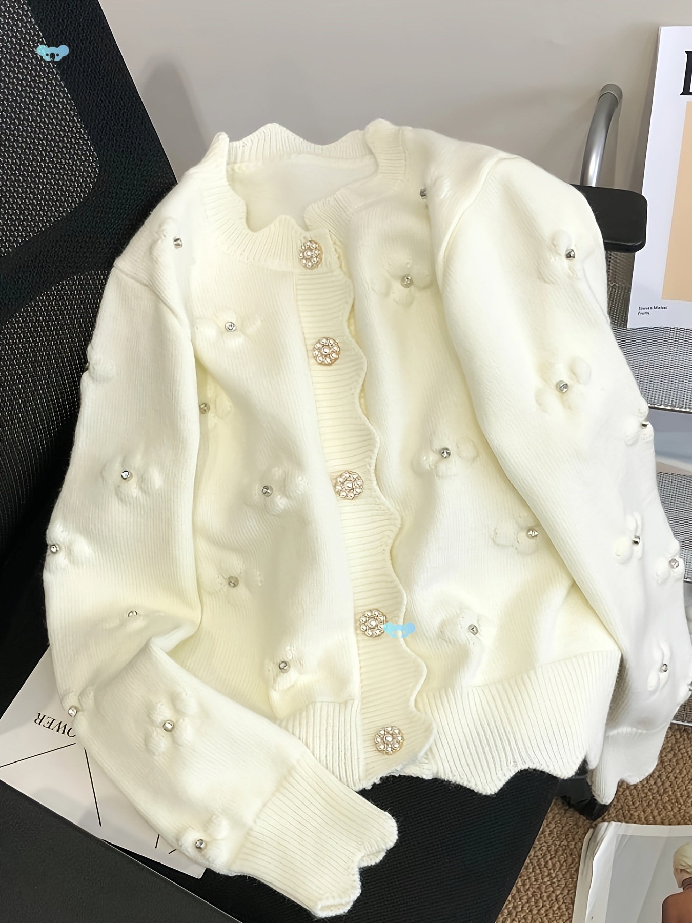 レディース カジュアル シック パール装飾ボタン フロント カーディガン