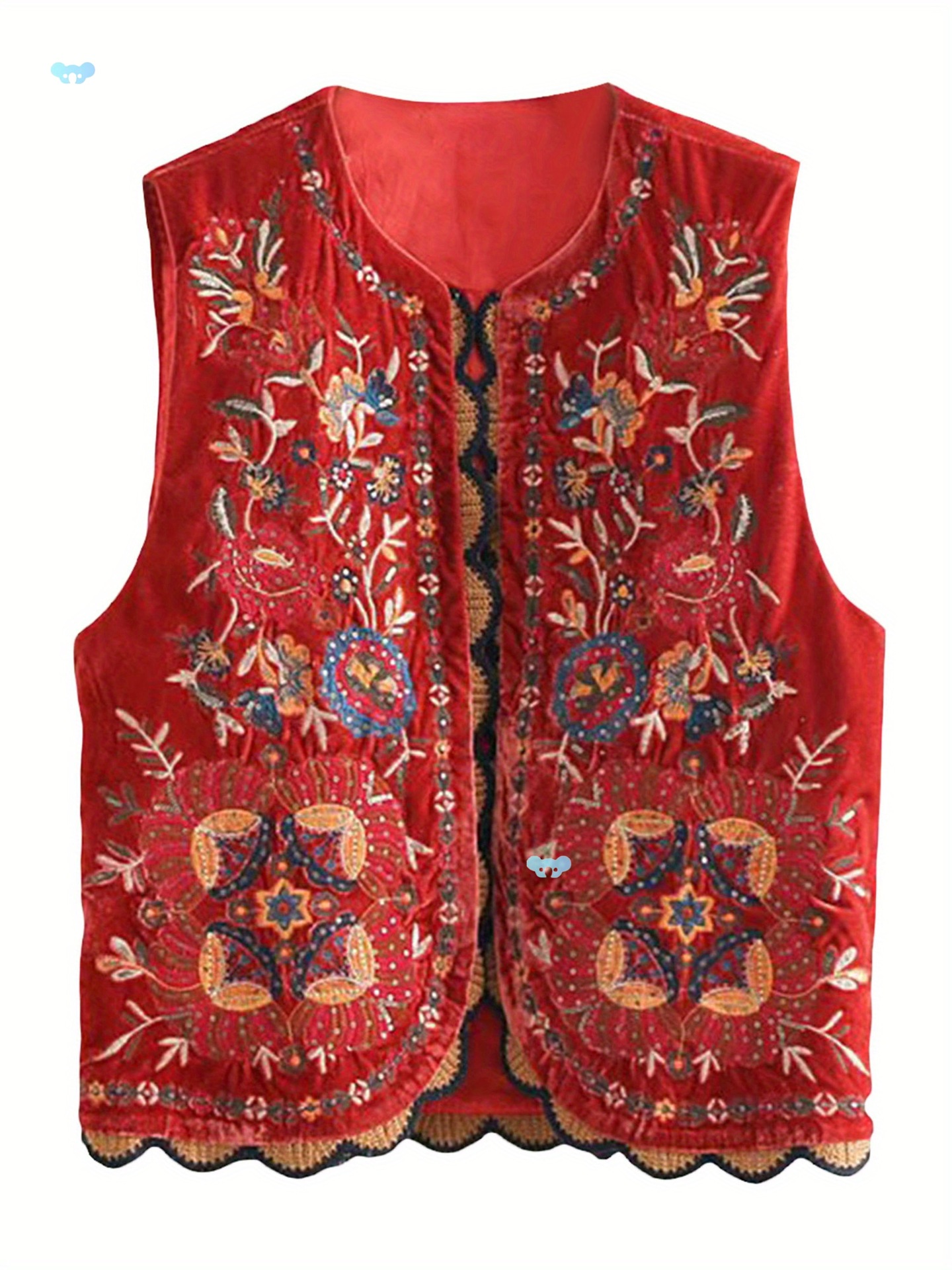 女性用ベスト袖オープンフロント刺繍クロスボーダー配送