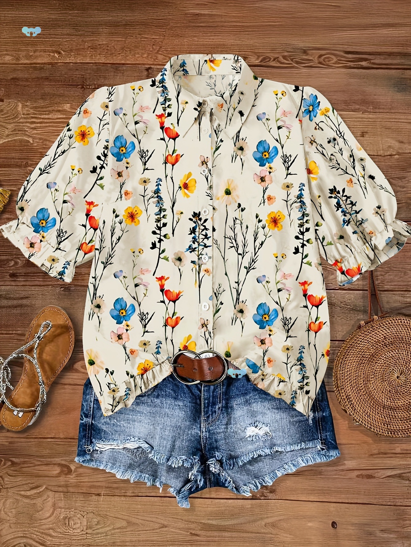 プラスサイズの女性の半袖ボタンアップシャツクロスボーダードロップシッピング