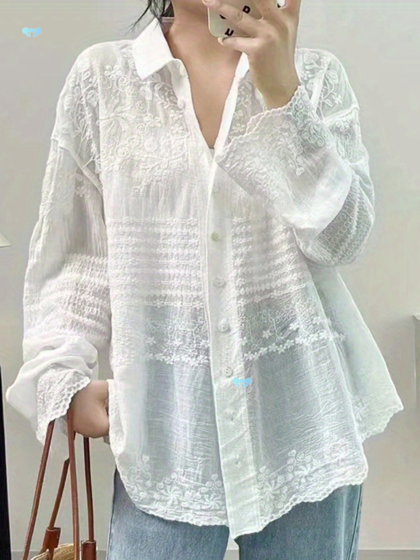 女性中空ジャカードトップスルーズラペルネックロングクロスボーダー