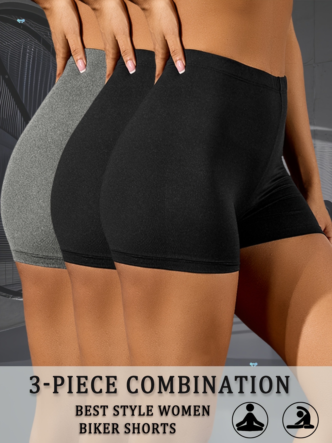 女性用スーパーソフトバイカーショーツ3枚パックシースルーなしクロスボーダー