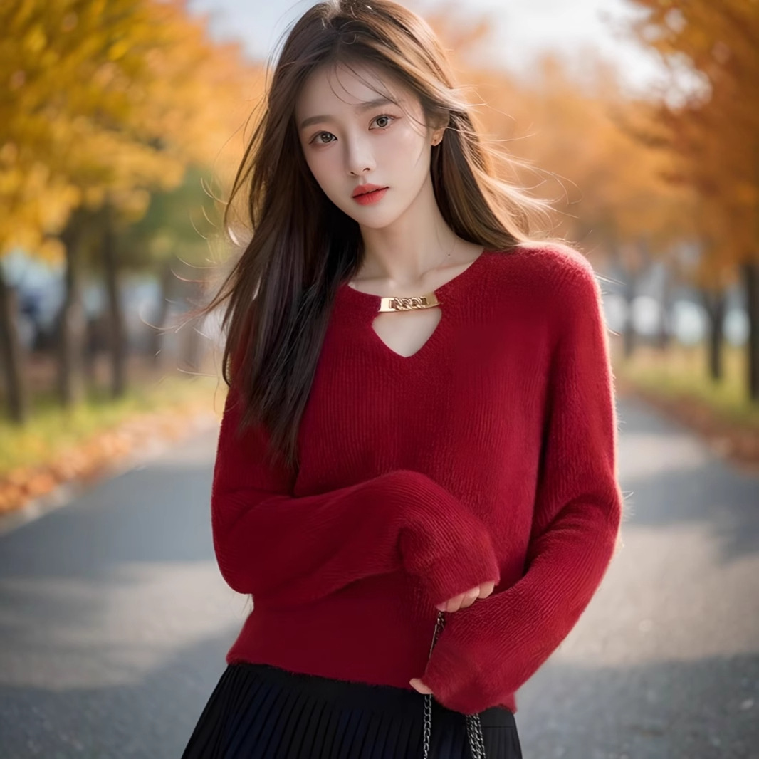赤いセーターは冬2024の新しいニットの香りが底を打って春と秋の小衆が厚いミンクのニットの上着を真似ている
