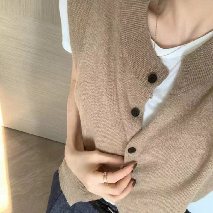 老銭風カンカン肩ニットカーディガン馬甲女高級感気質シンプルでおしゃれで痩せています。