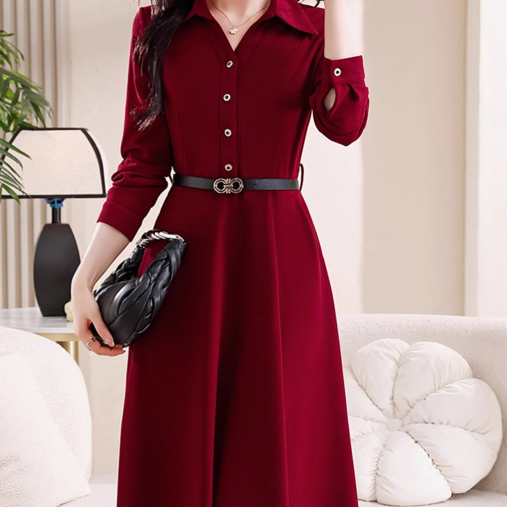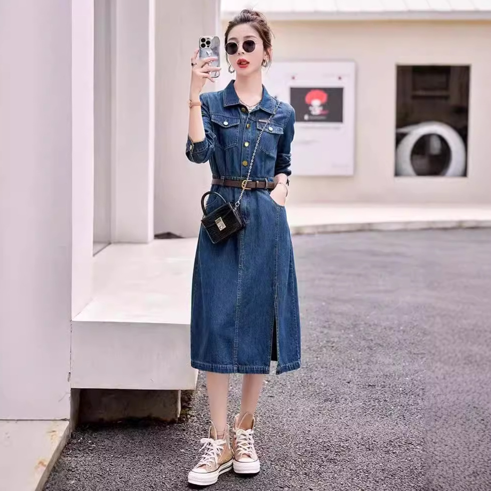 2024新型のやせた小柄な春秋タイプのデニムのワンピースのスカートの質感の高級感の長袖のワンピースの女性