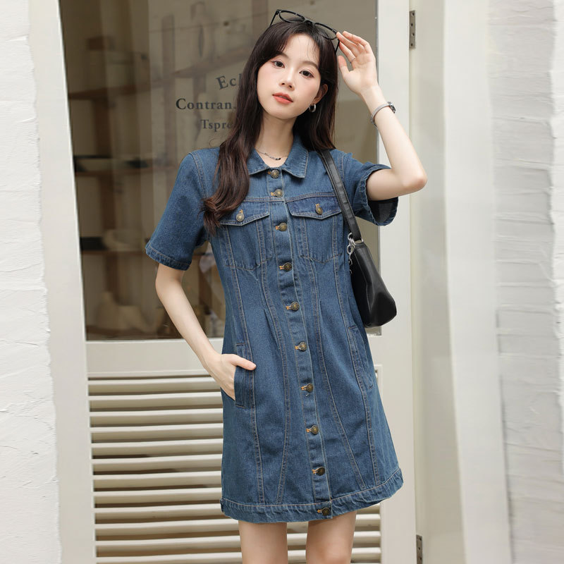 レトロpolo襟デニムワンピース2024新型小柄なデザイン感がゆったりしています。