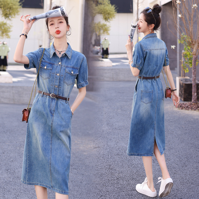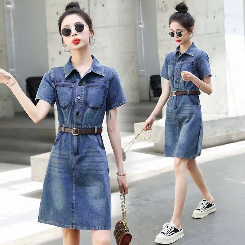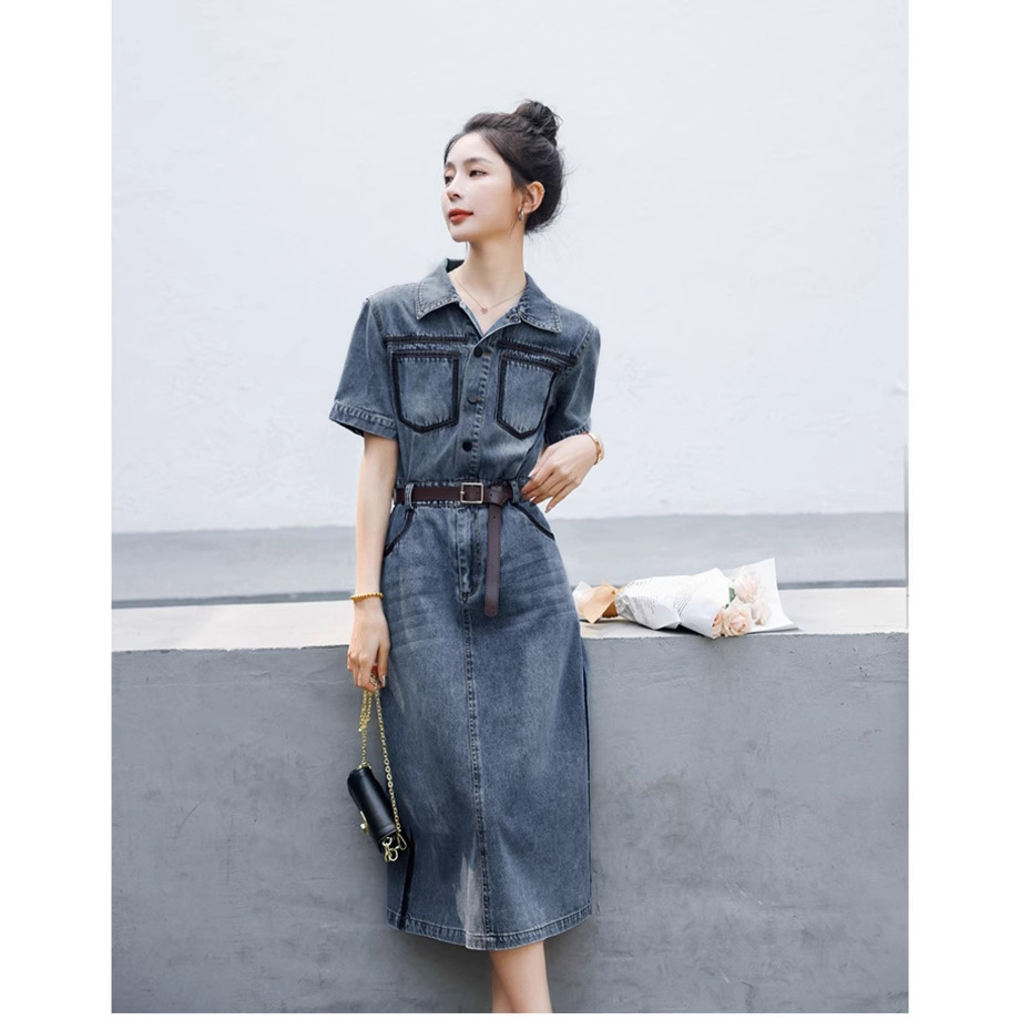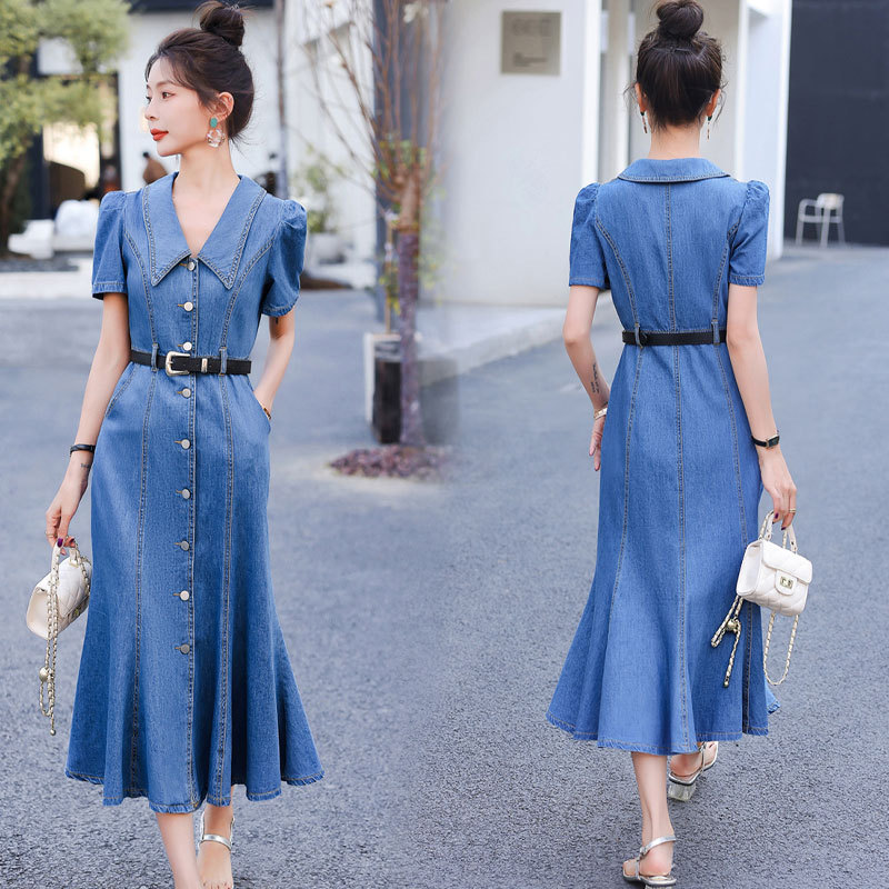 デニムのワンピースの女性2023年夏の新型はやせて高級感があります。