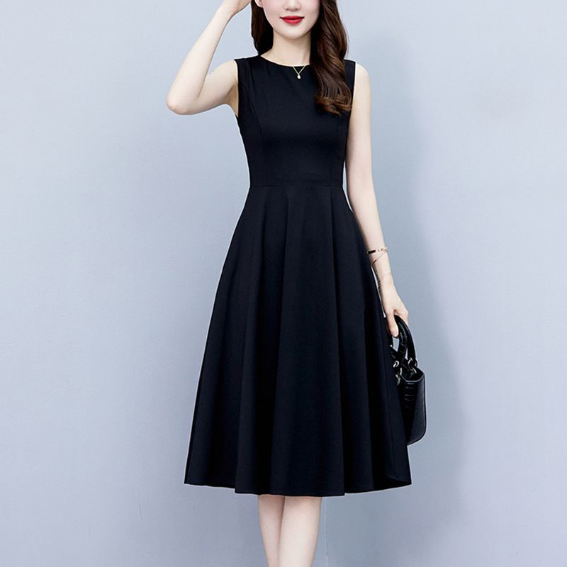 ヘボン風の黒いノースリーブのワンピースの女性の長いタイプ2023夏の新型は腰を収めて明らかにやせています。