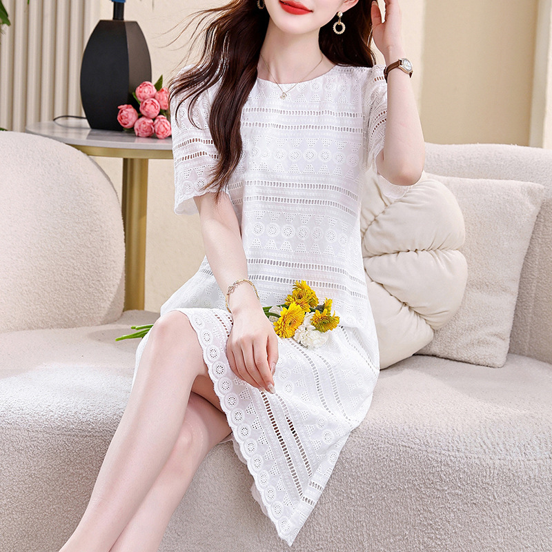 夏のファッション刺繍入り小さなクリアスリムハイエンド携帯電話ドレスポケット付きミドル丈スタイルドレス